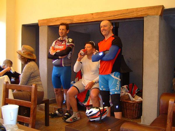 Next stop was Tyndrum in a place that did fish and chips on paper plates, and had a wood burning stove in a marquee-like extension. I had my first Scotch Pie, a delicacy that tastes exactly like a pie. Drying all our kit around the stove, we watched as the showers become real rain. Really good timing yet again. We stayed there until the sun suddenly came out, put on everything we had, and then faced up to the bad news. It was 3pm and still 48 miles to go. Worse still, Glen Coe angles due West, straight into the headwind we have been neatly avoiding all week. Never mind, we had to hit it sometime, and at least it gave us a chance to practice our chain-gang.